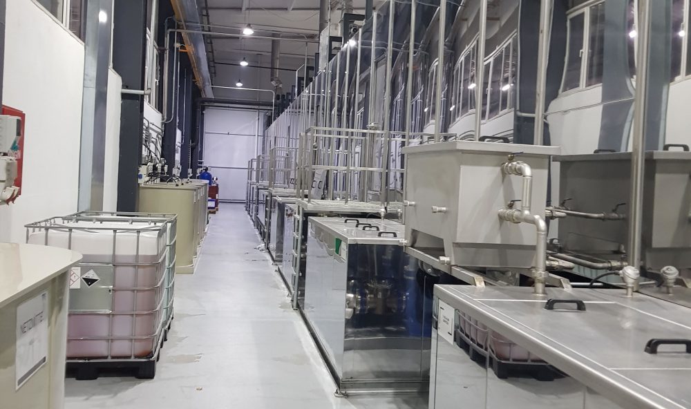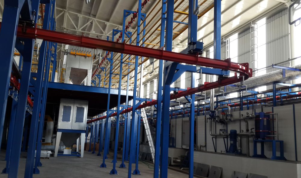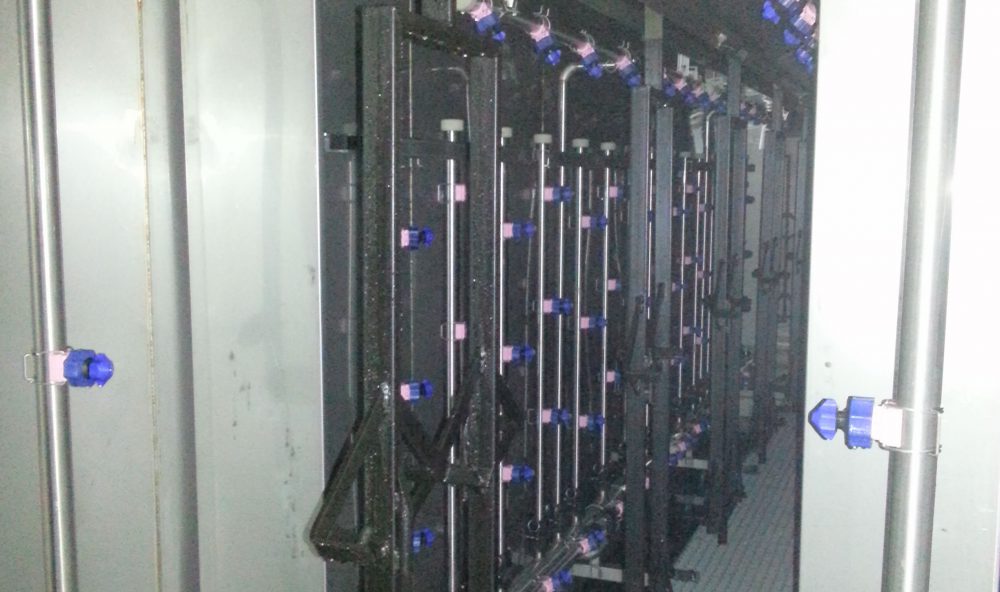 Sprey yıkama hattının kurulmasının amacı, metal yüzeyde bulunan yağ tabakasını temizlemek ve metal yüzeyde ince bir film oluşturmaktır. Bu işlemin ardından boyanacak yüzey veya metal, boya için daha elverişli, dış faktörlere karşı daha dayanıklı ve korunmalı hale getirilir. Bu otomatik sistem sayesinde sürekli olarak kimyasal değerler ve sıcaklık değerleri dijital göstergeler sayesinde takip ve kontrol edilebilir. Çalışma mekanizmasından ötürü, daldırma tipi yüzey temizleme ve işleme tesislerine göre daha verimlidir. Edinim bedeli maliyeti yüksek olmasına rağmen kısa sürede kendini amorti ederek kullanıcısına da kalite ve tüketimi az olmasından dolayı avantaj sağlar. Sıcaklık 45-55 ºC, basınç 1,5-1,8 bar ve sürenin minimum 1,5 dakika olduğu bir çalışma ortamında uygun şartlarda istenilen verim elde edilebilir. Fosfatlanan parçalar pasivasyon ve maksimum 130ºC kurutmadan sonra boyanacak hale gelerek işlem için hazır duruma getilir. Parçayı banyo yaptırma  seçenekleri ve temizleme yöntemleri işyerinin potansiyeli ve iş alanındaki tercihine göre farklılık gösterebilir. Bu sistem sayesinde toz boya işlemi öncesi hazırlıklar gerçekleştirilir.