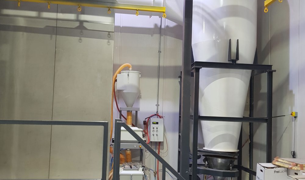 Multi-siklonlu toz boya kabini, özellikle fazla sayıda renk uygulamaları ve çabuk, güvenilir renk değişimi gerekli olduğunda kullanılmak üzere özel olarak geliştirilmiş bir sistemdir. Maksimum toz kazanma verimi, küçük boyutlardaki siklonların çok küçük bir alana yerleştirilmesi ve yüksek atık hava debisi çıkışı ile sağlanır. Bu oran %95’in üzerindedir GÜN KA ihtiyaçlarınızı göz önüne alarak filtre ve siklon gruplarını özel olarak tasarlar, sizde sisteminizden maksimum verim alırsınız.